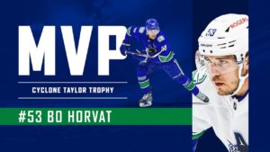- Cyclone Taylor Trophy – “Most Valuable Player” (fan vote): Bo Horvat