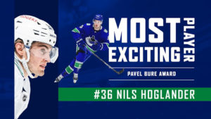- Pavel Bure Award – “Most Exciting Player” (fan vote): Nils Höglander