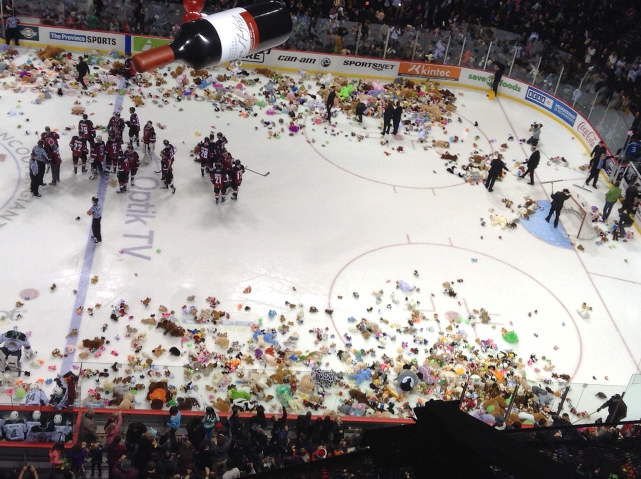 True most of the “Teddy Bears” would be in space sent flying from the rafters, but one has to think at that time, they would just continue with “toss” leaving the game officials and whoever scored the goal to “eat crow”.