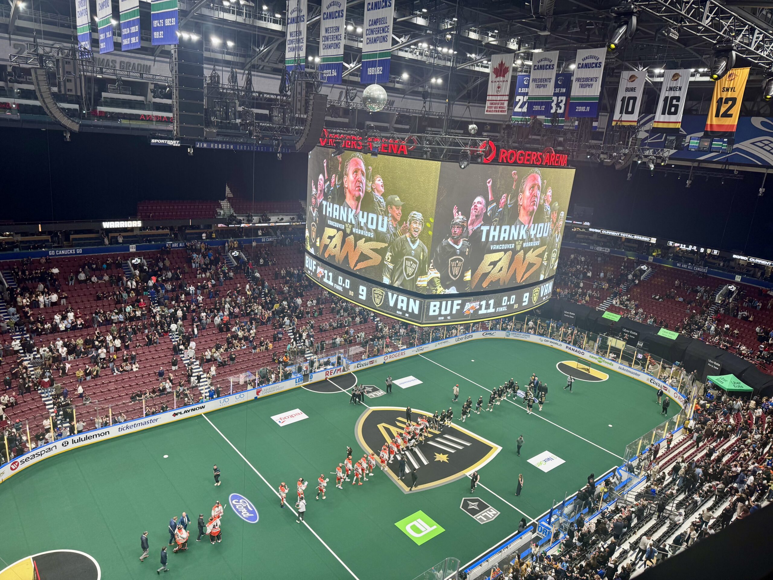The Vancouver Warriors’ dream season came to an end on Sunday night at Rogers Arena, where they fell 11-9 to the Buffalo Bandits in Game 2 of their National Lacrosse League semifinal series.