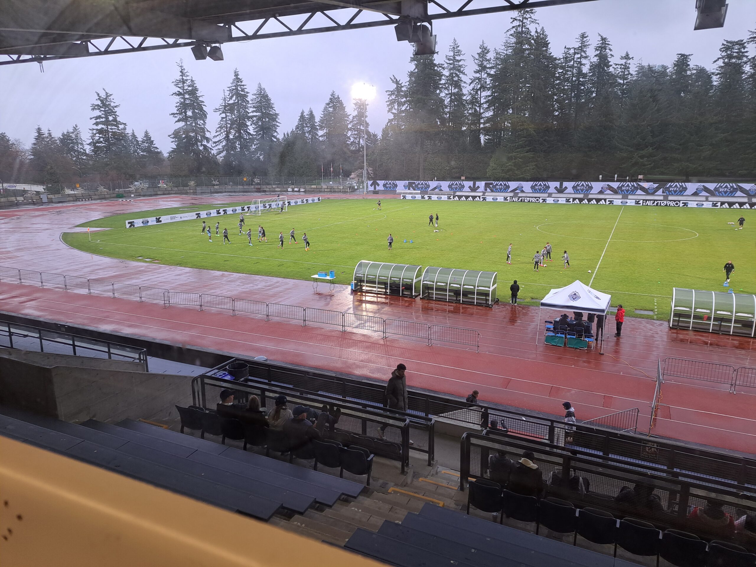Say what you will regarding sports that are played outside facing the elements, the recent WFC2 match Sunday evening had a bit of everything from heavy rain to wind and blowing rain, but the match at Swangard Stadium against MNUFC2 went on as usual.