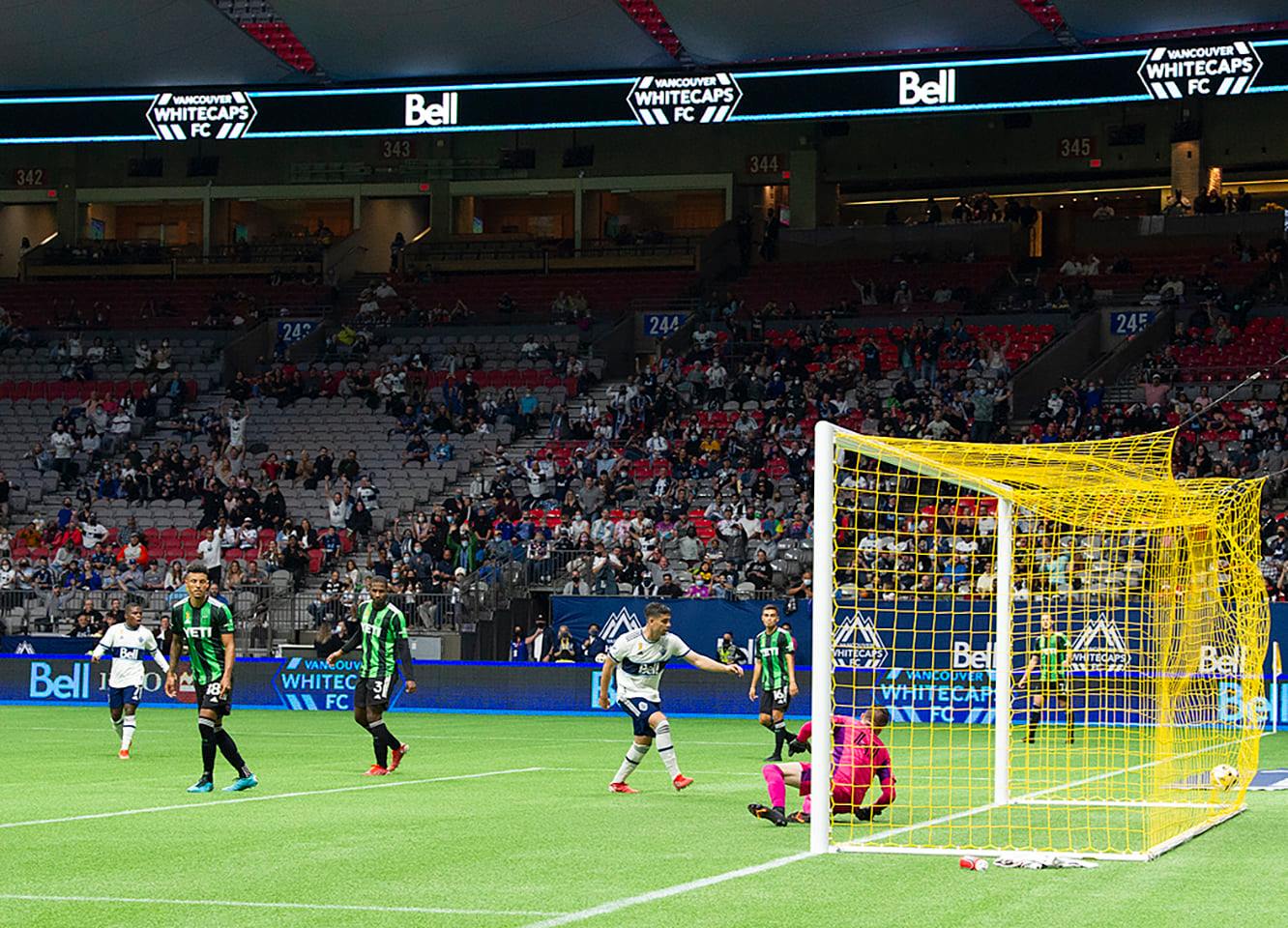 Austin’s Diego Fagundez got a yellow card for a late tackle on Vancouver’s Cristian Dajome in the 7th minute, while Vancouver’s best chance was in the 13th minute off a corner kick with Brad Stuver smothering the ball on the line keeping the game scoreless.